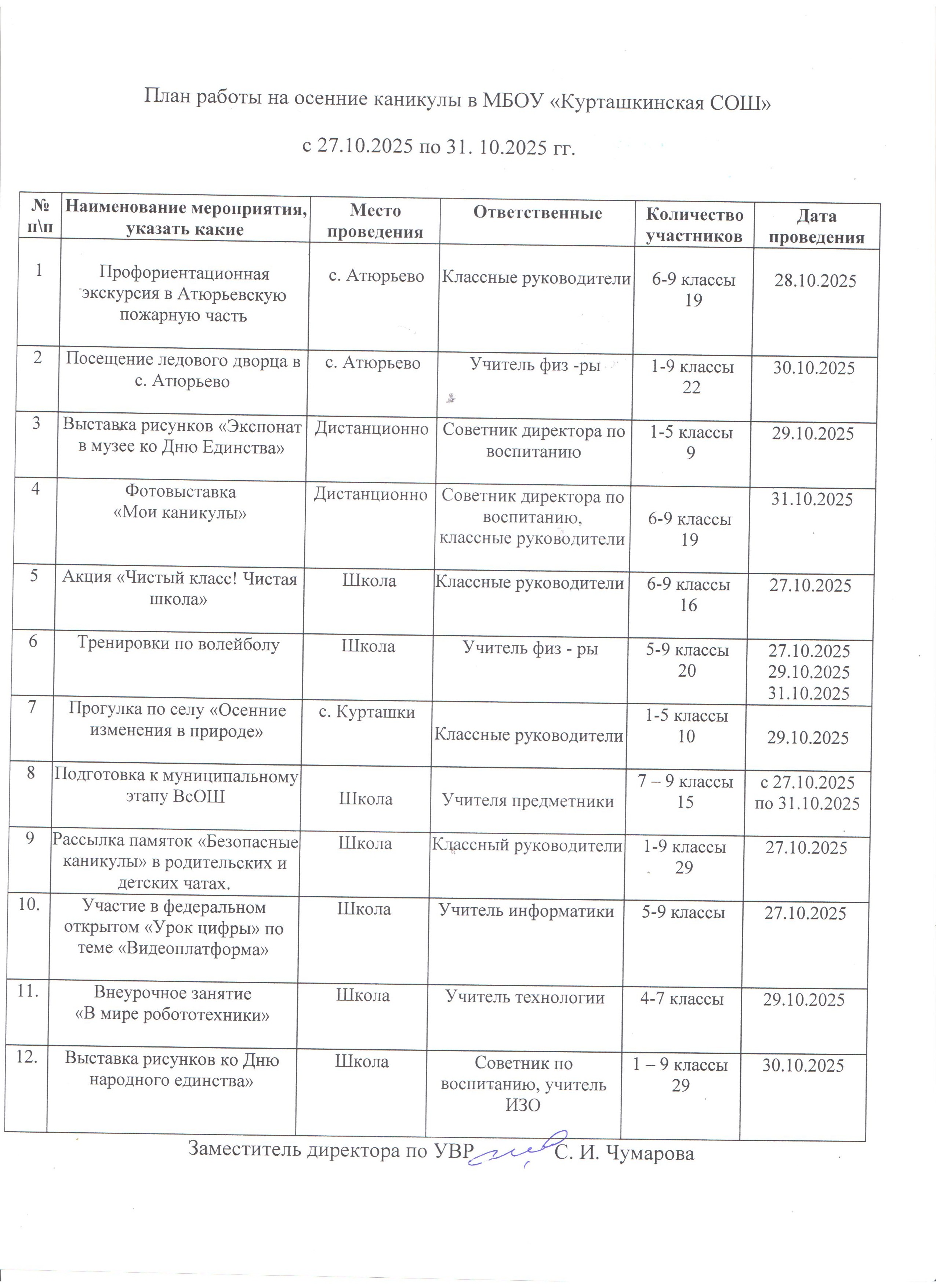 Уважаемые родители! В период осенних каникул для обучающихся школы будут проведены следующие мероприятия: